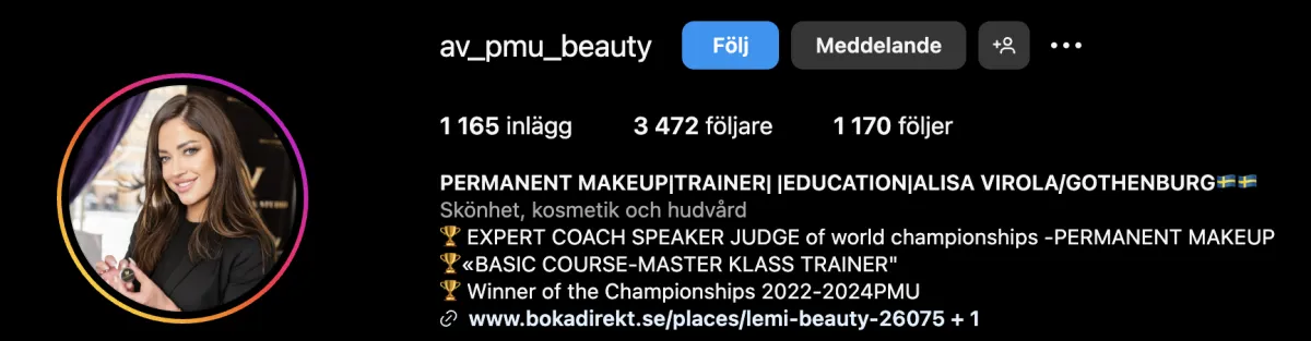Mitt namn är Alisa Virola och har både klinik och utbildningar inom Permanent Make Up i Göteborg, Sverige.