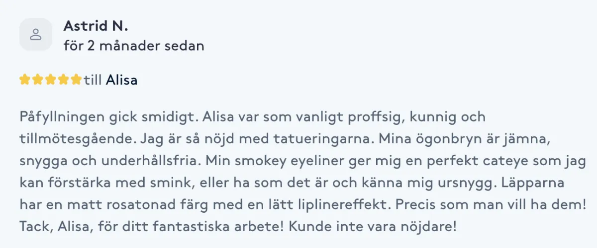1000+ nöjda kunder över hela Sverige har gjort Permanent Make Up hos mig.